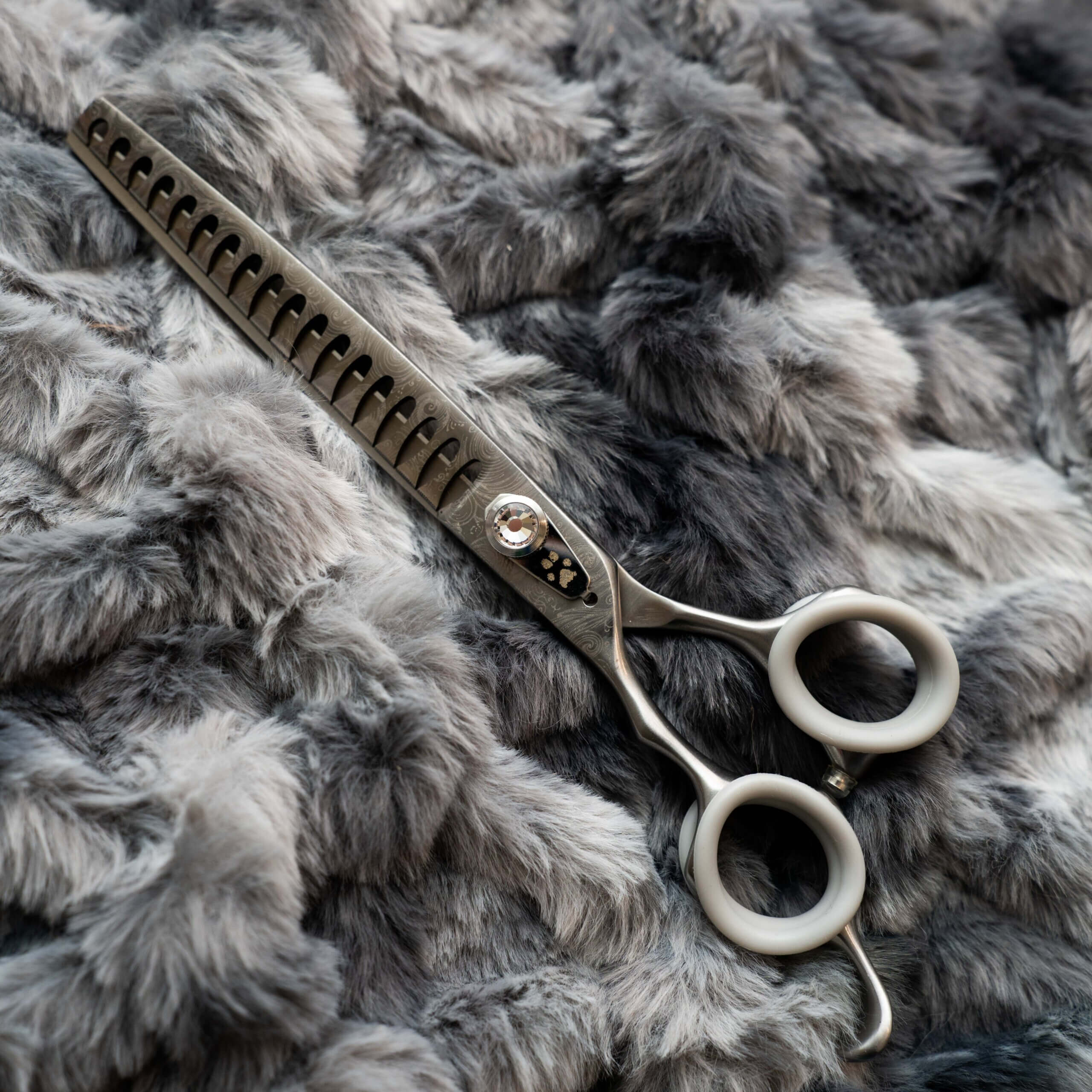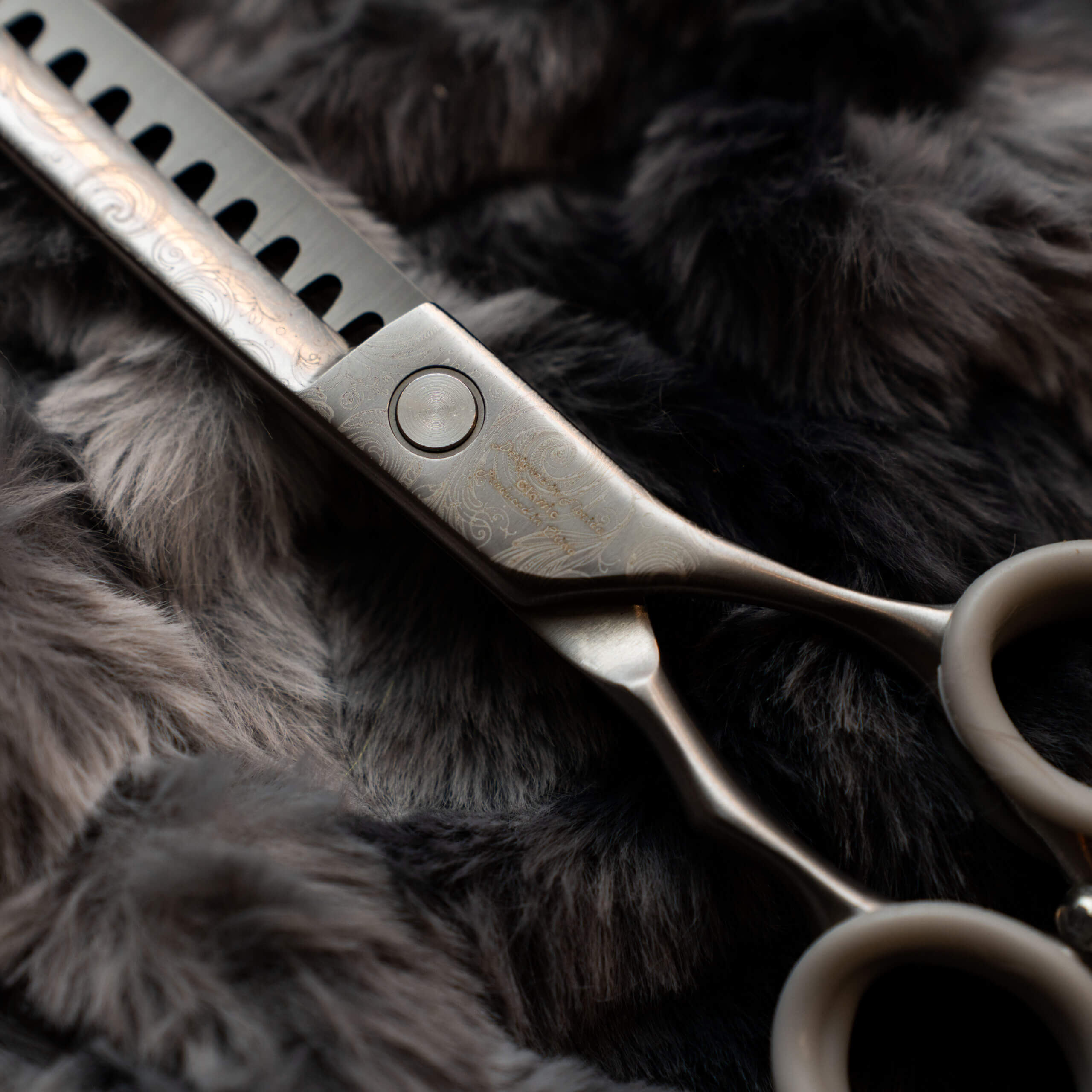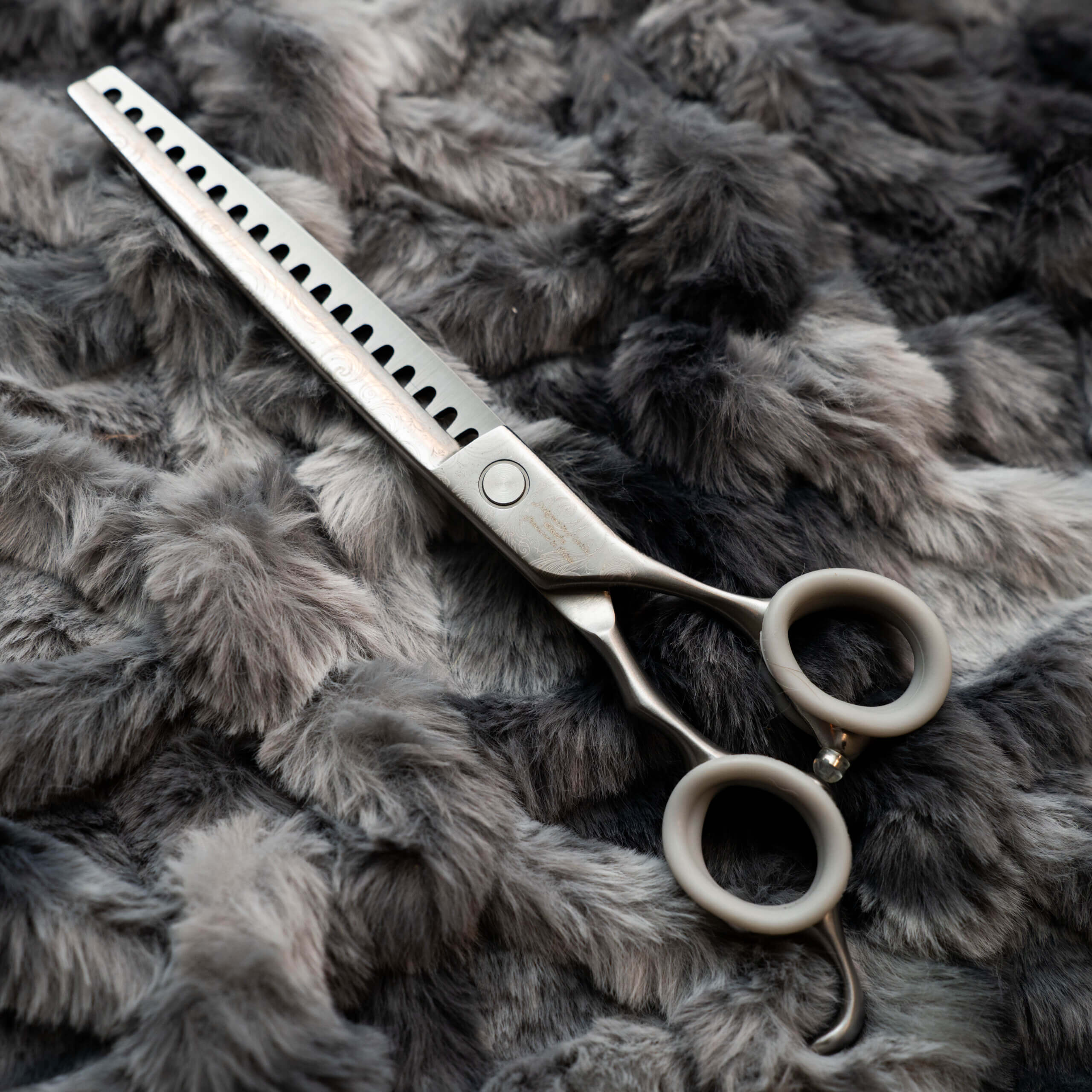 The Classic Chunkers are a GroomBox essential for groomers who want reliable dog grooming chunkers. These shears remove bulk quickly while keeping coat texture soft and natural. The tooth pattern delivers smooth action and prevents harsh marks on the coat.